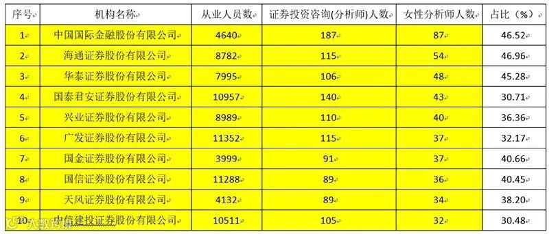 另外值得一提的是,多家券商女性分析师的登记人数比例已经超过50%。