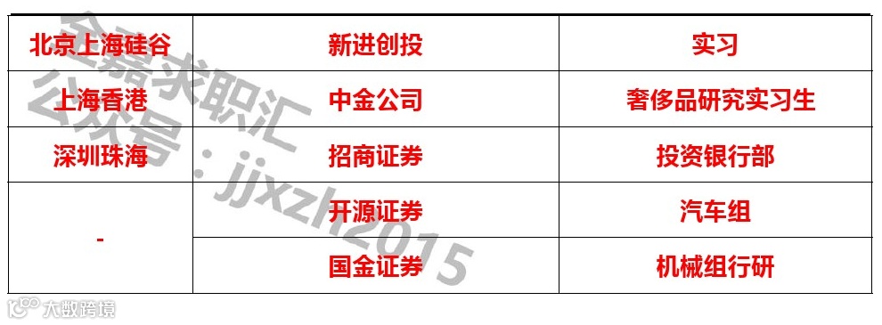 5、通过CPA考试、司法考试,有券商投行、律师事务所、会计师事务所实习经历者优先。