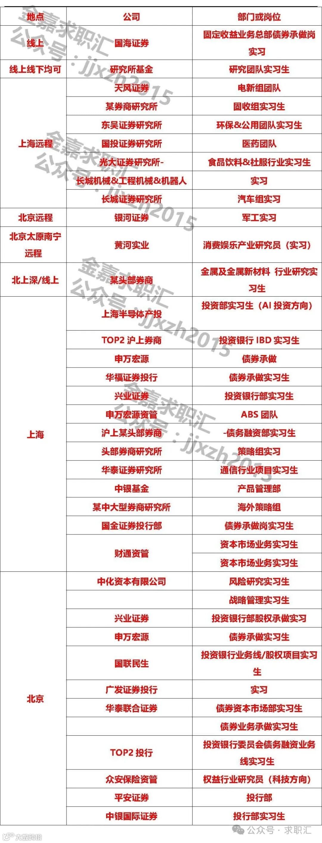 1.国内外知名院校毕业经济、金融、管理等相关专业;具有相关投行或者固定收益部实习经验者优先;2028年及以后毕业优先;