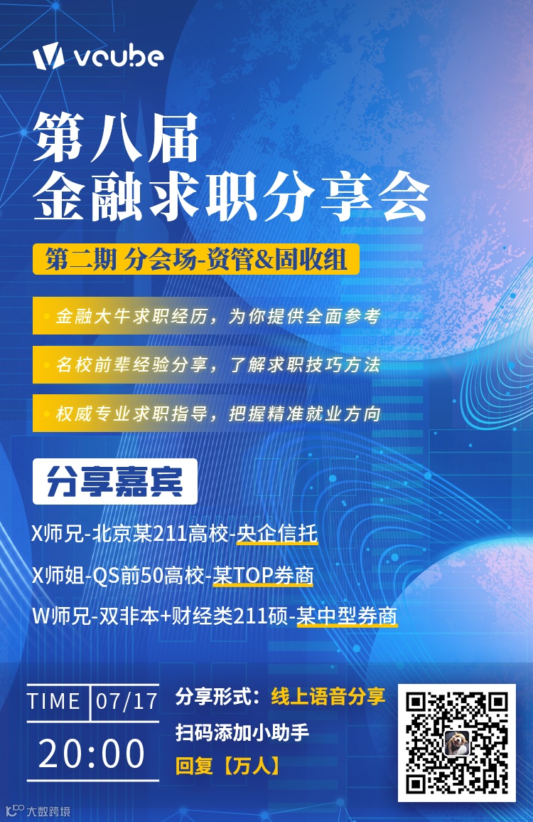 金融小伙伴致力于搭建一个金融垂直领域职业信息分享和交流公益平台,通过持续不断的公众号推文和线上线下活动,提供及时、全面、高效的行业招聘信息和职场提升经验。目前,我们已吸引了超过100万粉丝,在海内外金融学子和在职人士中均享有盛誉。