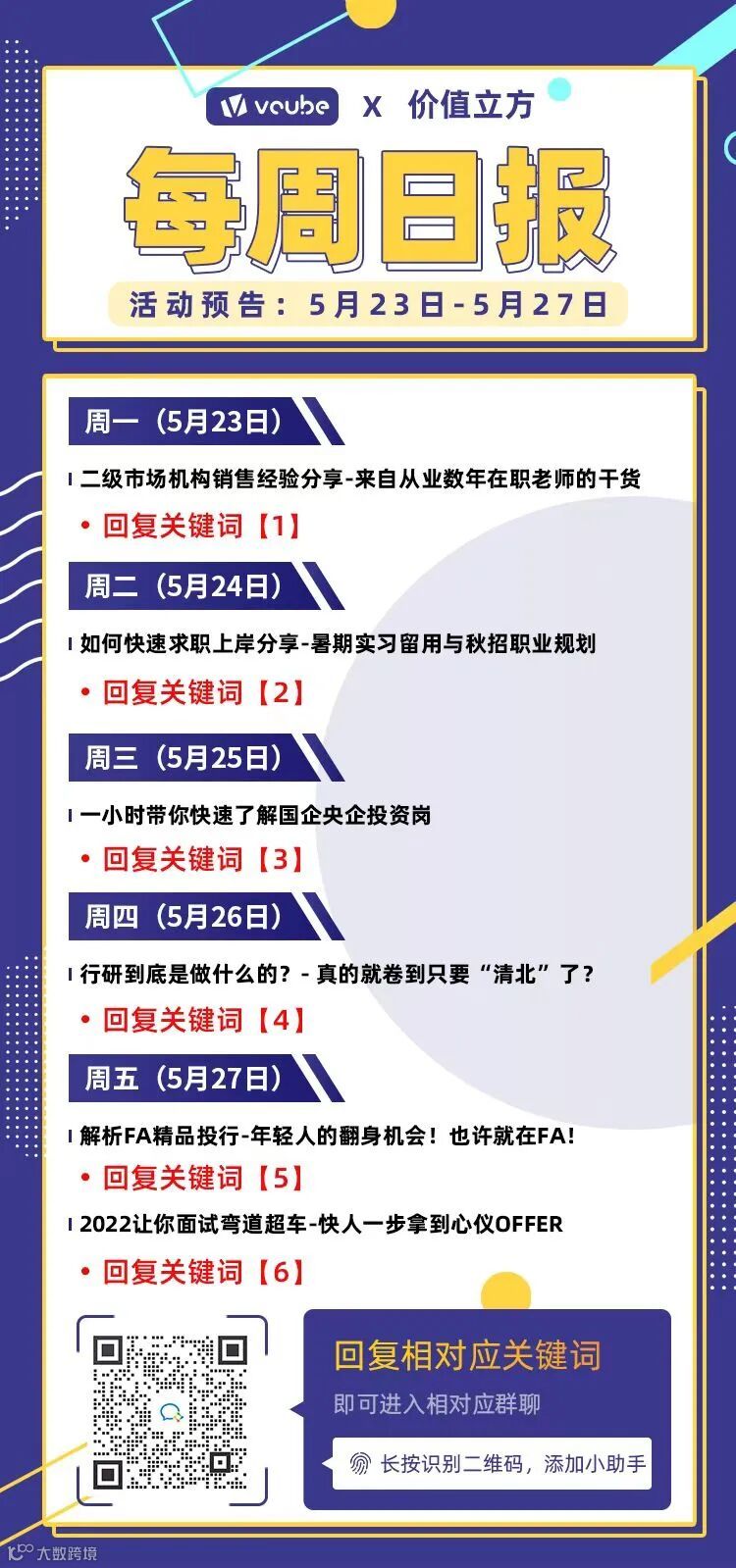 为大家发现更多可能的方式,让大家了解真实的职场生活,使大家清晰自己的未来规划。