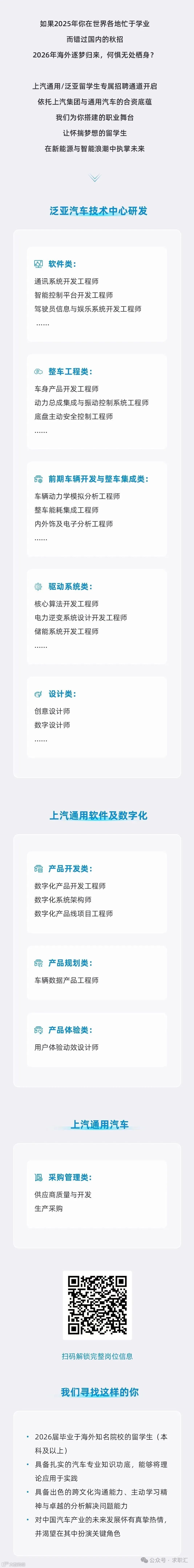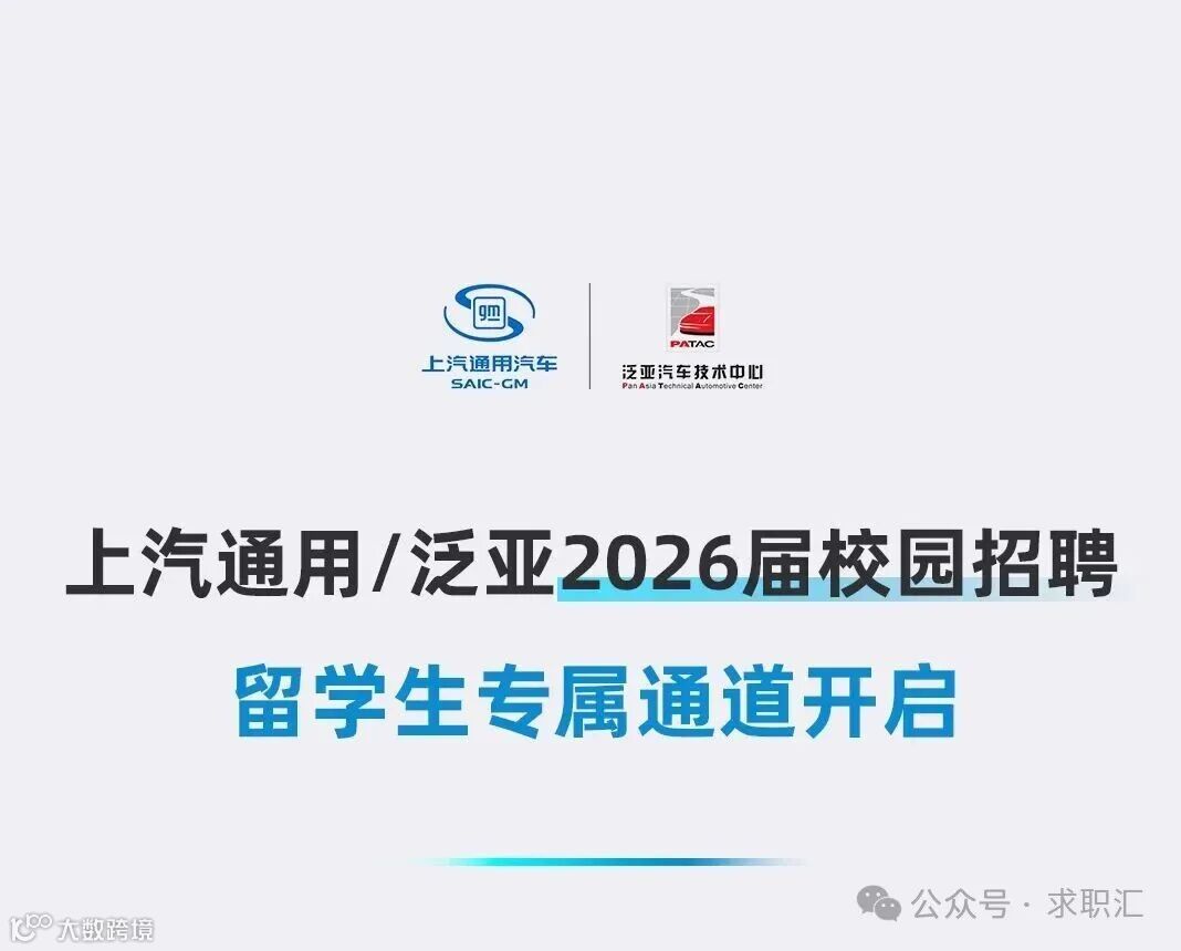 上汽通用/泛亚2026届校园招聘留学生专属通道开启