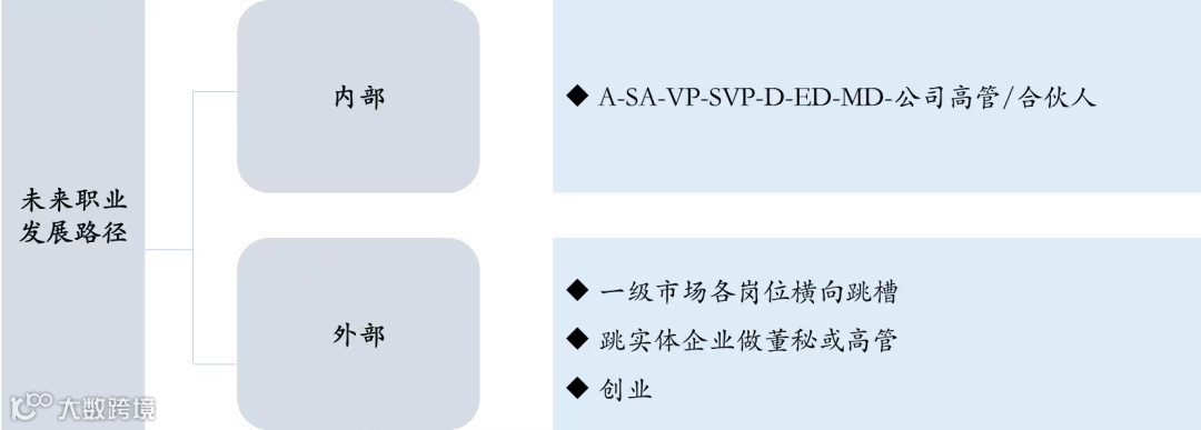 一般一级市场的职业发展路径分为内部和外部。