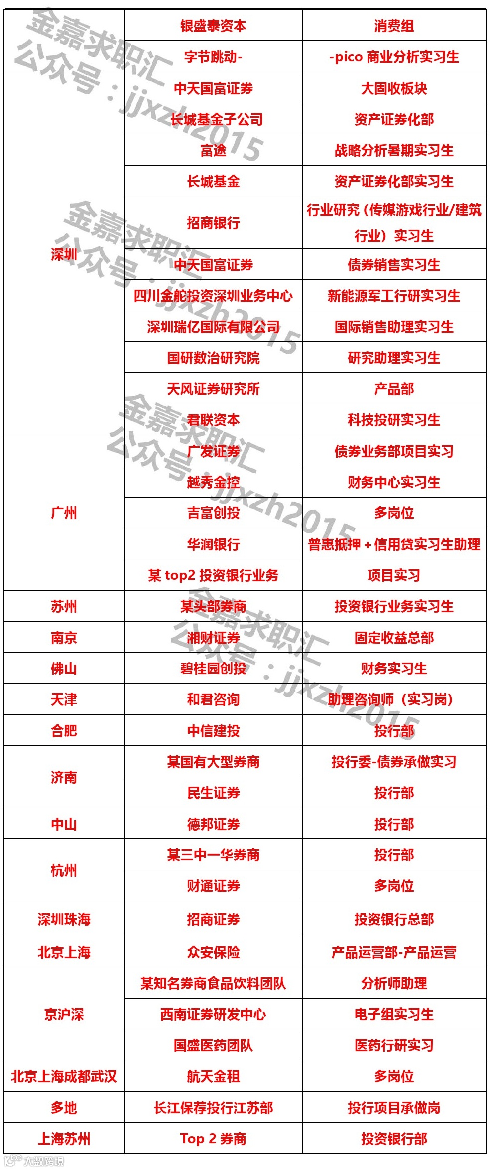 2、不限专业,具有较强的逻辑思维能力、学习能力,具有较强的责任心;欢迎投行相关专业背景的同学,同样欢迎任何专业背景、但具有投行职业潜质的同学。