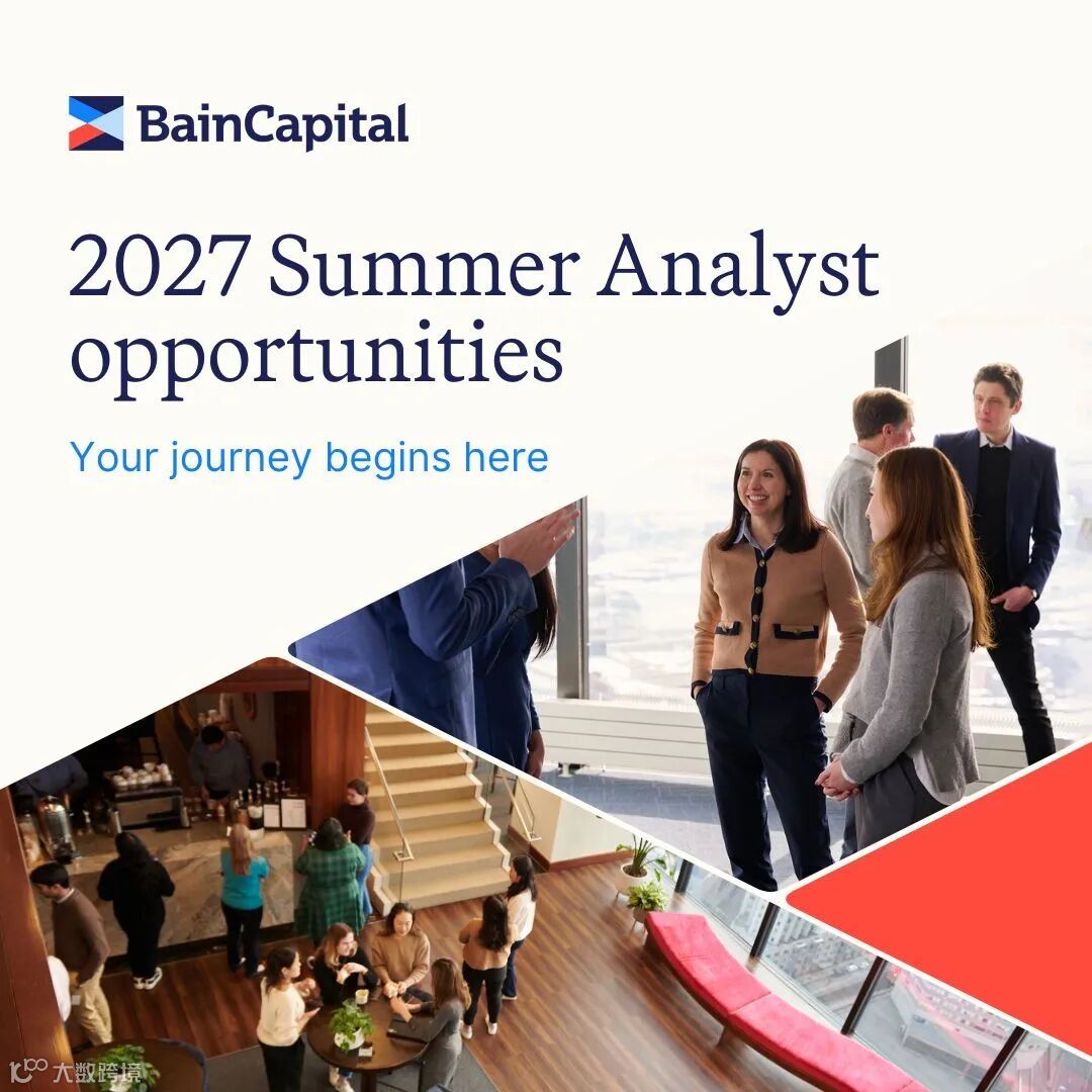 期盼在全球领先的投资机构开启你的职业探索之旅吗?贝恩资本 (Bain Capital) 2027年夏季实习项目现已开放申请!我们诚邀本科阶段的优秀学生加入贝恩资本的信贷投资 (Credit)、私募股权 (Private Equity)、房地产 (Real Estate)、特殊机会投资 (Special Situations)这四大业务团队,从实习阶段开始,成为价值缔造者,共同开创无限可能!