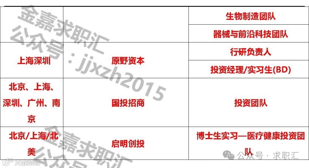 国内外医、药、生物学等医疗健康相关专业硕士以上学历;大健康相关赛道工作背景优先,财务复合背景者是加分项,对医疗市场和医疗项目运作较为熟悉;