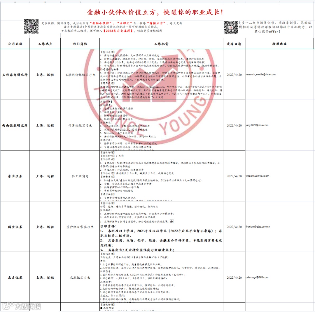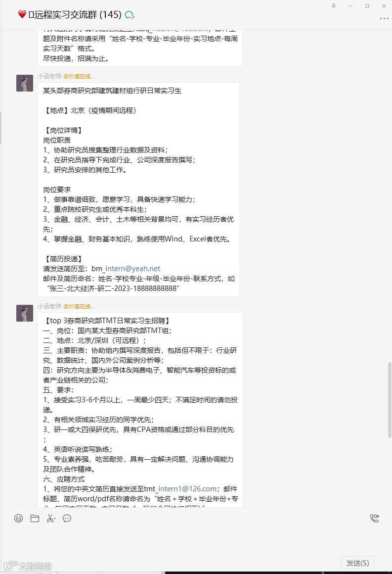 所以,我在此特别推荐一个公众号《金融远程实习》,每日持续发布各大金融机构的求职信息,而且疫情被隔离的同学不影响,在家就可以拥有实习经验。