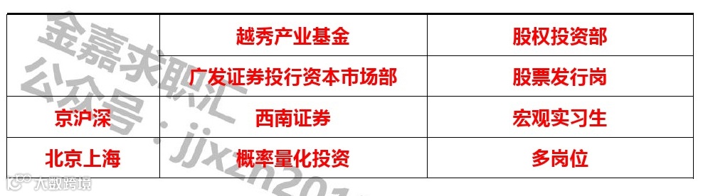 如需发布招聘信息直接发送至金融小伙伴(jrxhb2014)公众号后台,也可以添加工作人微信号(jzhecthu)联系发布,请备注“姓名+单位+发布招聘”!