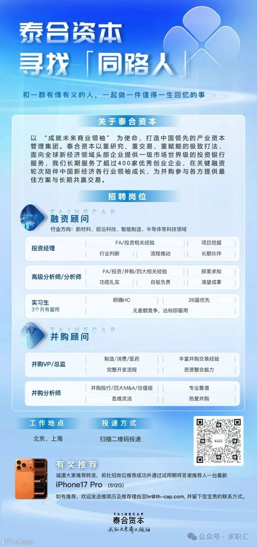 3、金融市场行业1年以上工作经验,对资管市场有深刻的见解;优秀应届生可投递;