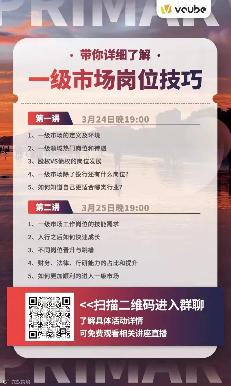讲座,详细分析一级市场岗位技巧。带你快速进入一级行业。