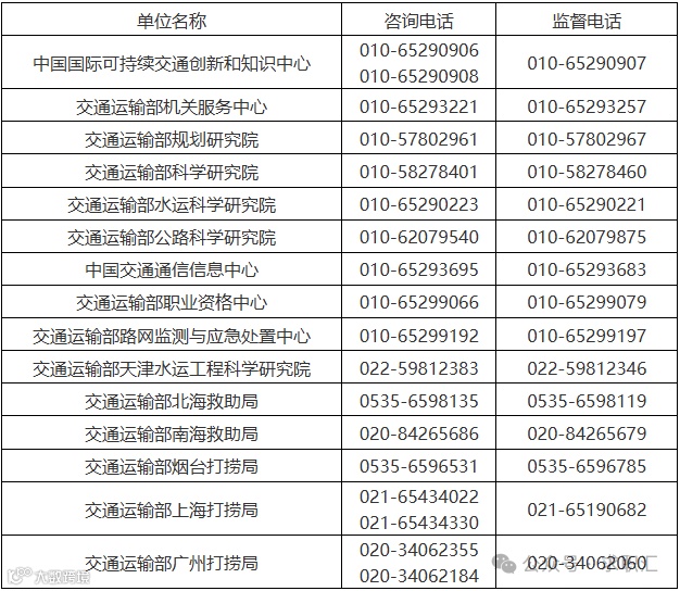 (四)交通运输部所属事业单位2026年度第三批统一公开招聘工作各招聘单位报名联系电话: