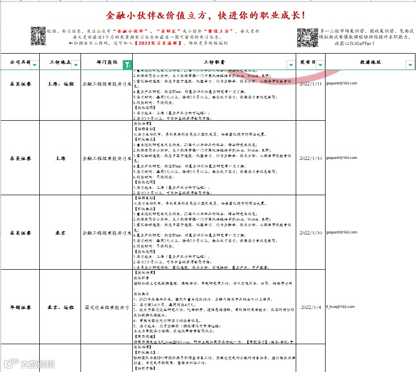 金融小伙伴、求职汇每天都在发实习机会,