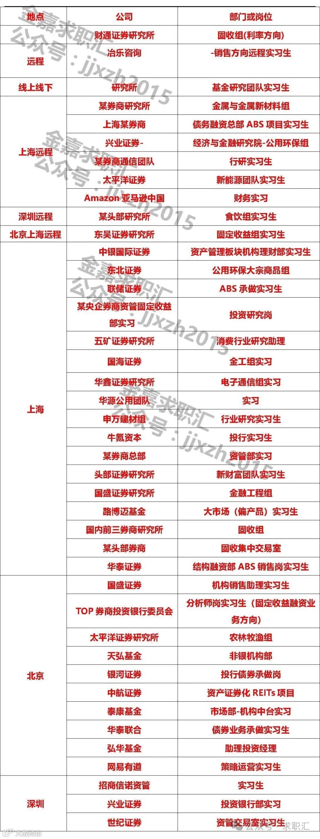 【北京、上海】中大型券商投行-债券/abs日常实习生招聘