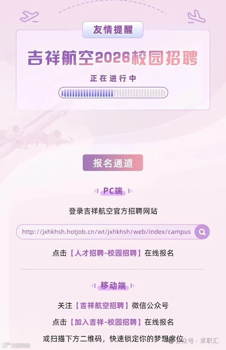 吉祥航空2026校园招聘空中宣讲会即将上线