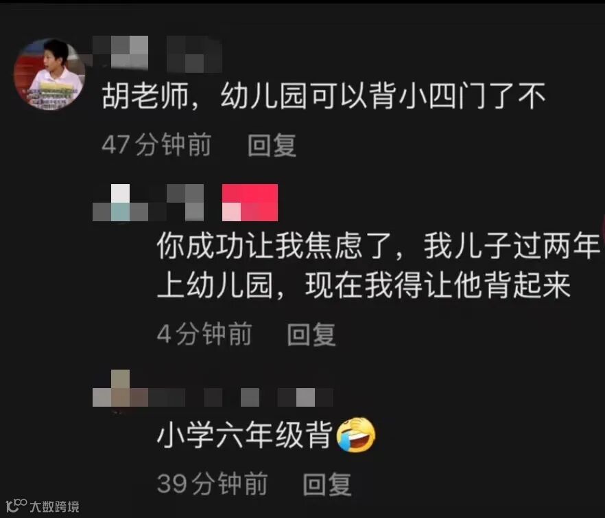 我甚至在抖音里看到了,幼儿园就已经开始背小四门了。