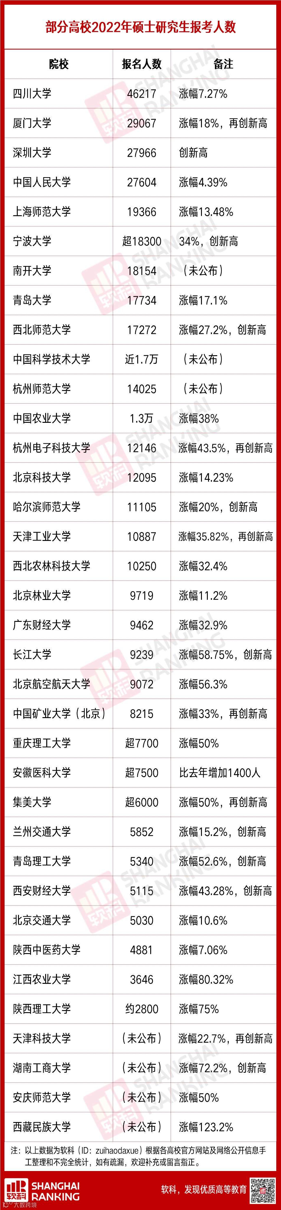 四川大学、厦门大学、中国人民大学等名校,一如既往是考研热门院校,报考人数超两万;