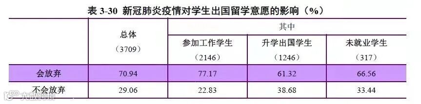 在南京大学2020年的毕业生就业质量报告中,有70.94%的同学表示疫情会影响其出国留学的意愿。