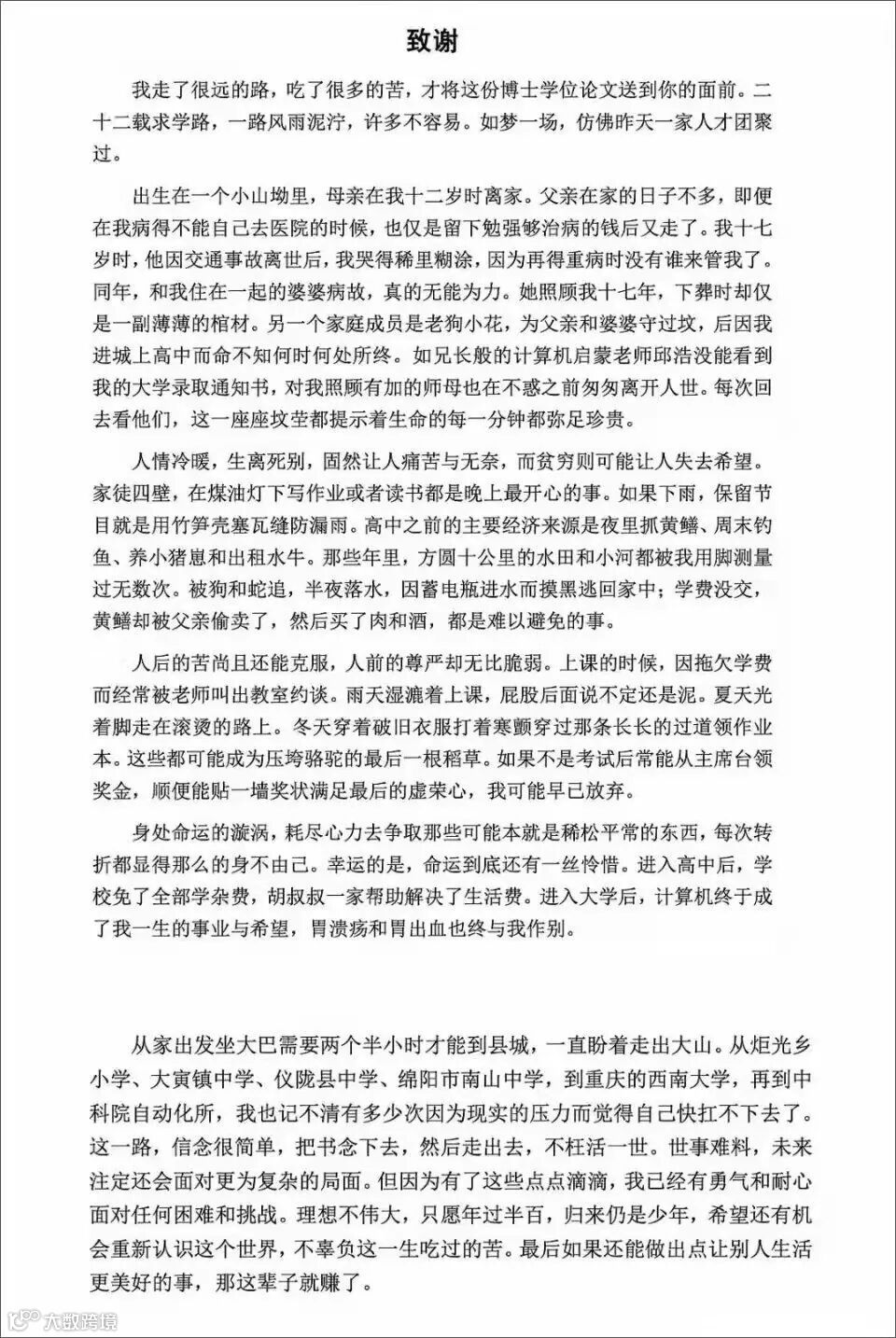看到这个我还想到了,上段时间的一个热搜,一个中科院博士的致谢信,文中介绍了他的出生成长的环境,吃过的苦,受过的罪,身边的亲人一个个离他而去。命运待他如此不公,他依然怀抱希望。