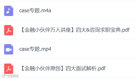 case专题的视频资料、金融小伙伴四大专题的万人讲座纪要以及四大面试解析原创讲义