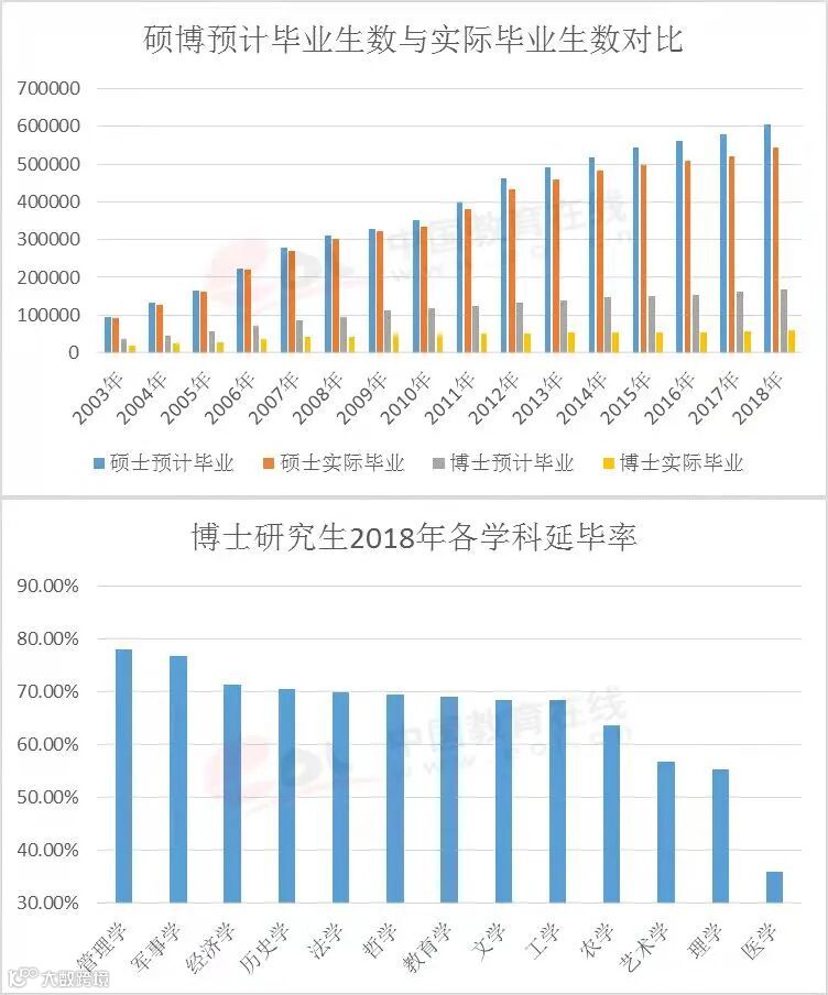 据《2020全国研究生招生调查报告》显示,近几年我国博士研究生的延期毕业率在持续攀升,其中管理学、历史学、法学、哲学、文学、教育学等人文社科类的博士延毕率均超过60%。