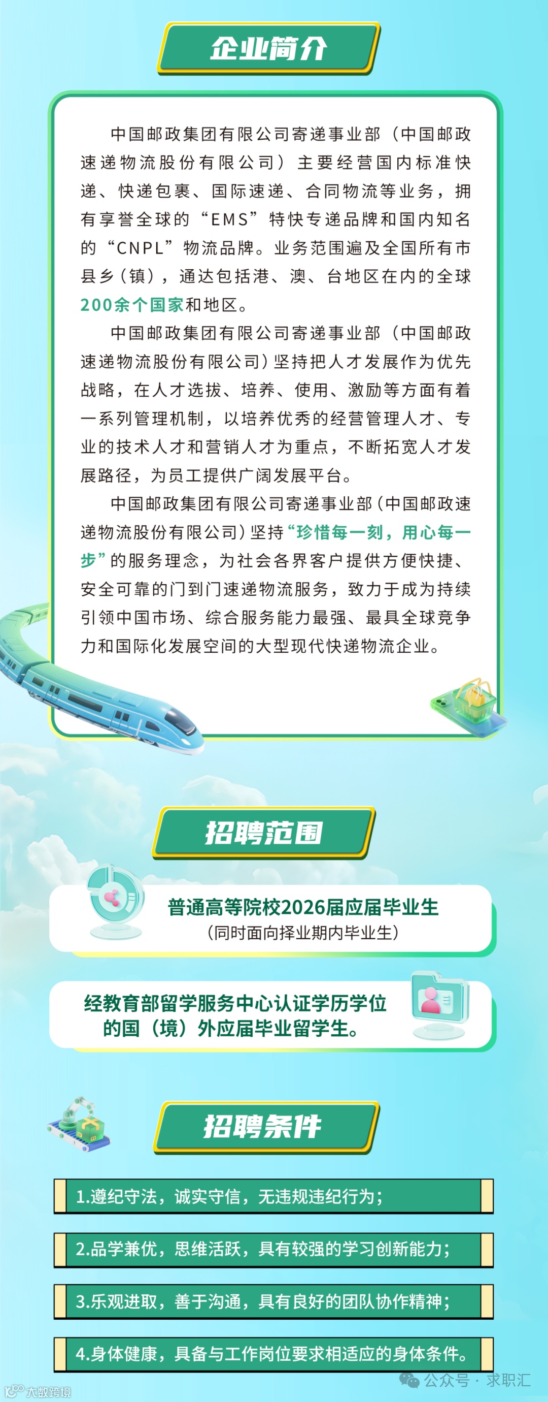 中国邮政集团有限公司寄递事业部2026届校园招聘