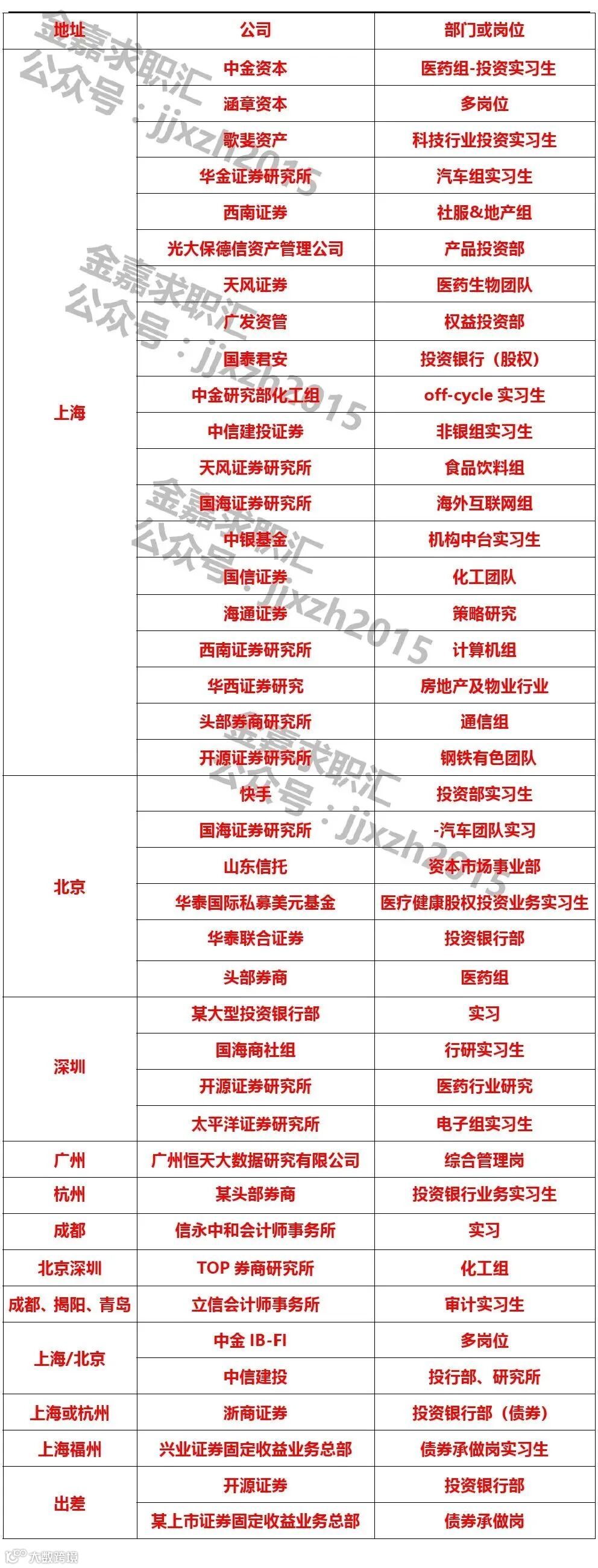 2.有投行、地产龙头、基建类龙头、公募基金等专业金融机构总部实习经历的同学优先;