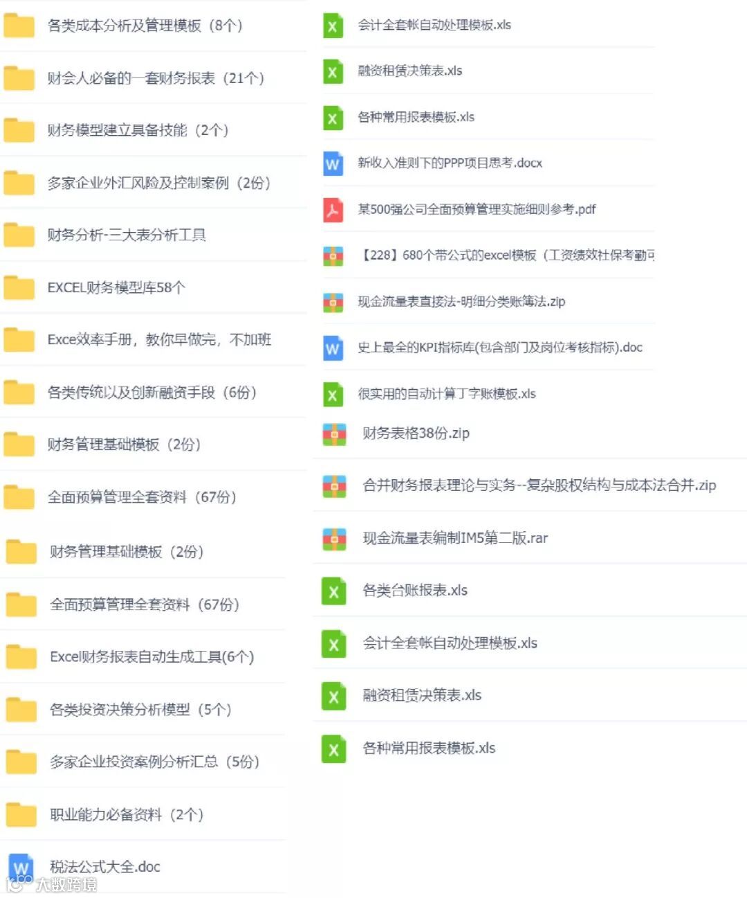 200+份财税资料,各类报表,各种模板,各种资料表格齐全;100+财务分析案例,里面不乏小米、伊利、美的、万达等企业的财务分析案例;权威的财务分析课程,包括一门课学通财务分析、清华大学慕课财务分析与决策、财务报表分析等,与名师课程零接触。