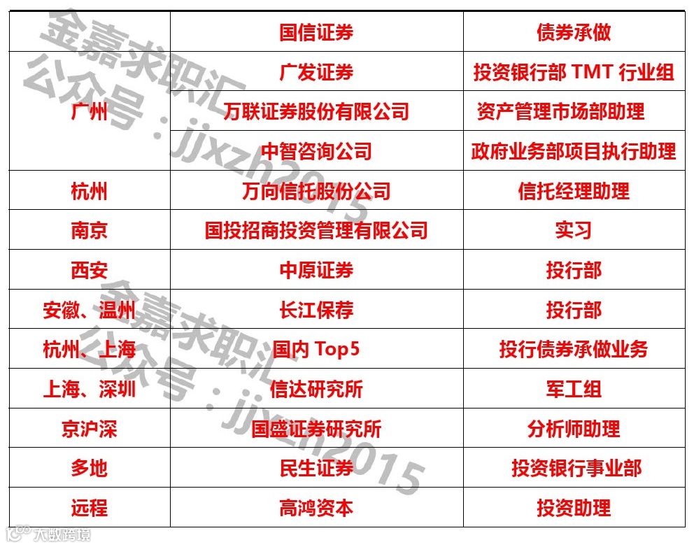 1、对投行业务有浓厚兴趣,适应加班和频繁出差,有相关实习经验者优先;