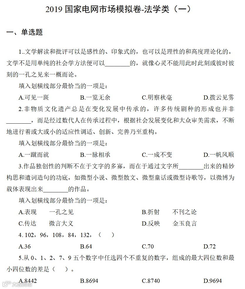资料一:国家电网行测考点精解和题库