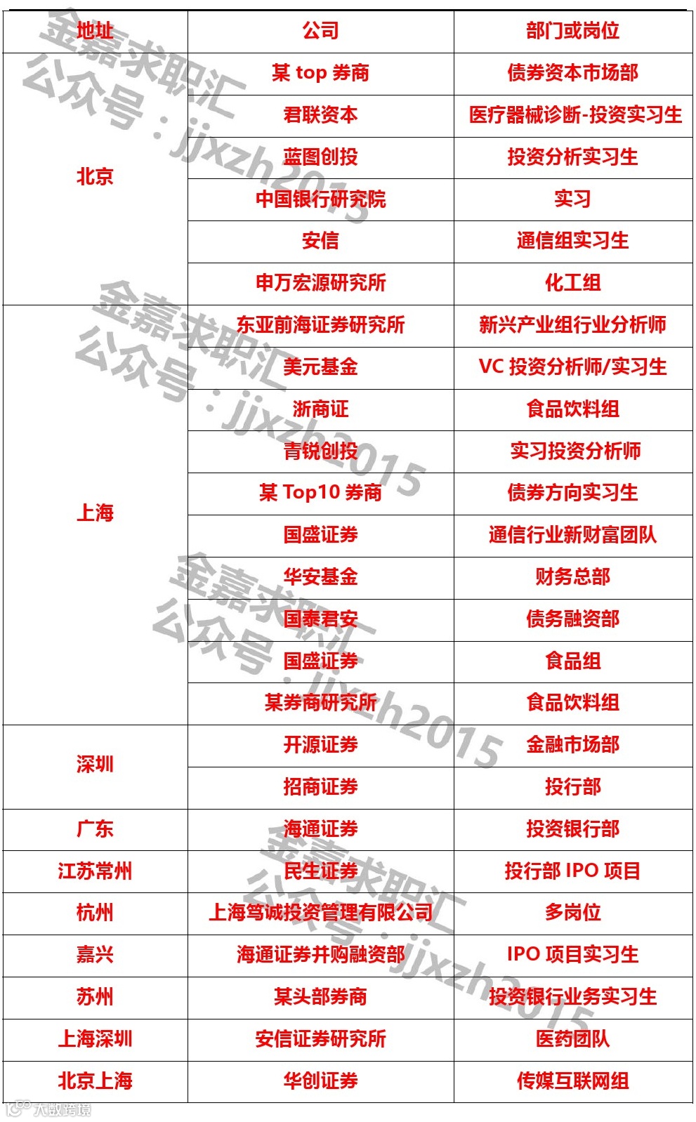 2、有券商投行部门、会计师事务所、律师事务所实习经验优先考虑