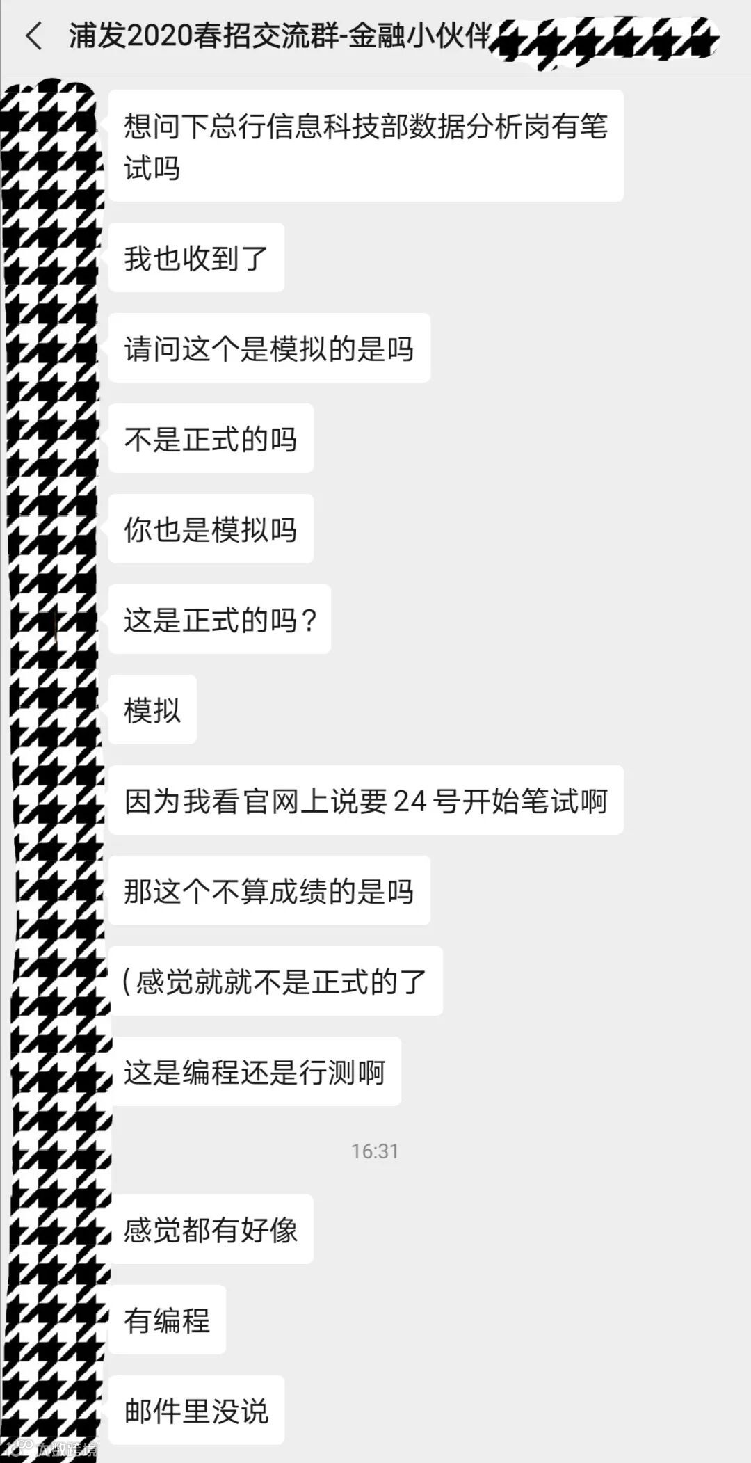金融小伙伴的浦发春招群里对即将进行的笔试测试进行了热烈的讨论,收到笔试的抓紧