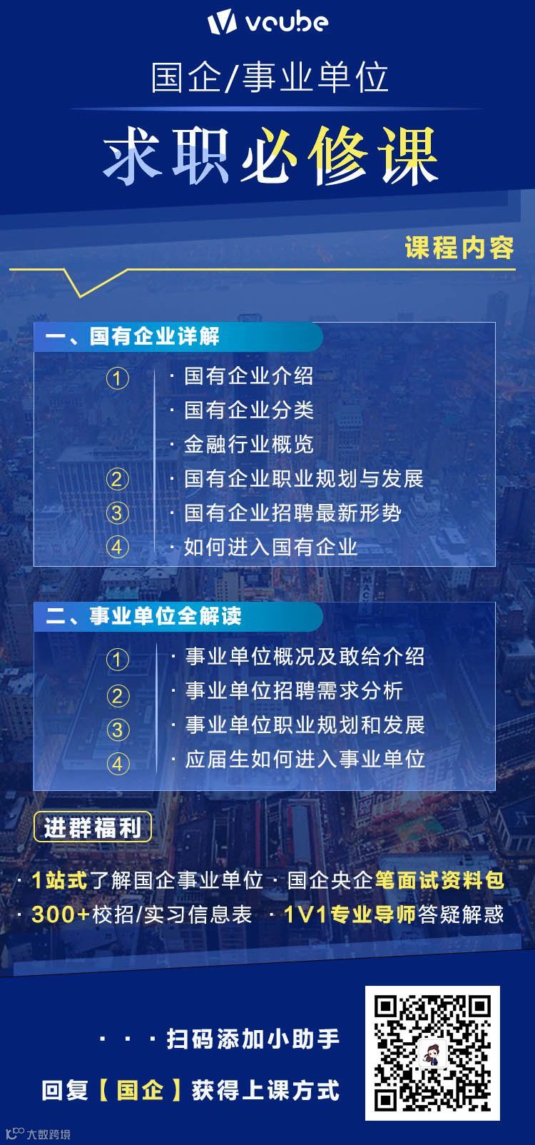 考虑到这些,我们邀请了对国企、事业单位行业有深入研究的导师,推出此次「免费」的线上国企、事业单位求职必修课,私信小助手『国企,抢位听课!