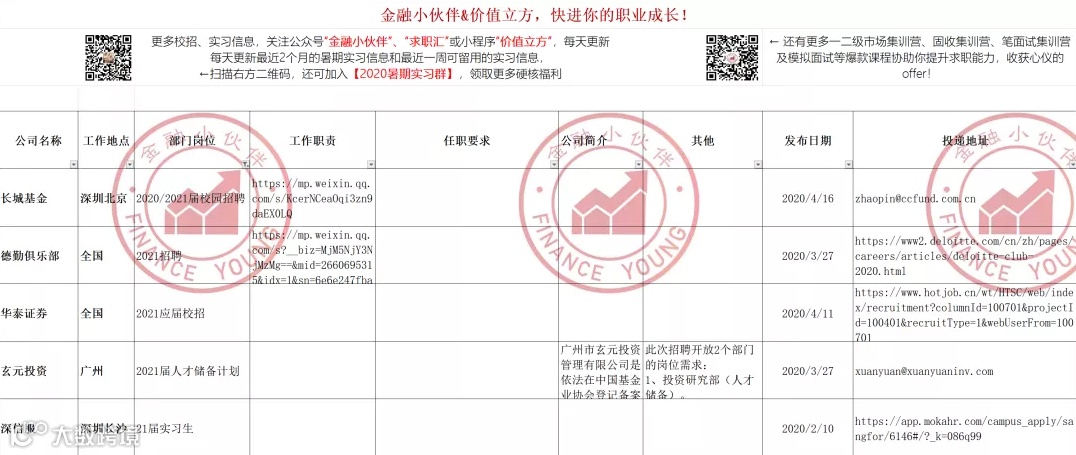 金融小伙伴历年与企业建立起的良好合作关系,积累下的校招资源,通通对你开放!