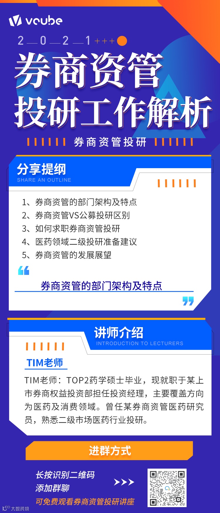 Tim老师:TOP2药学硕士毕业,现就职于某上市券商权益投资部担任投资经理,主要覆盖方向为医药及消费领域。曾任某券商资管医药研究员,熟悉二级市场医药行业投研。