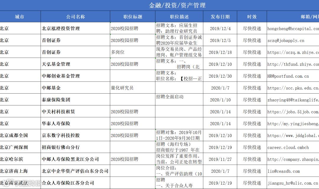2020春招信息汇总表