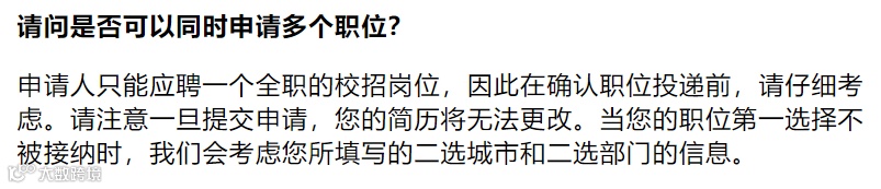 同时,每人只有申请一个岗位的机会