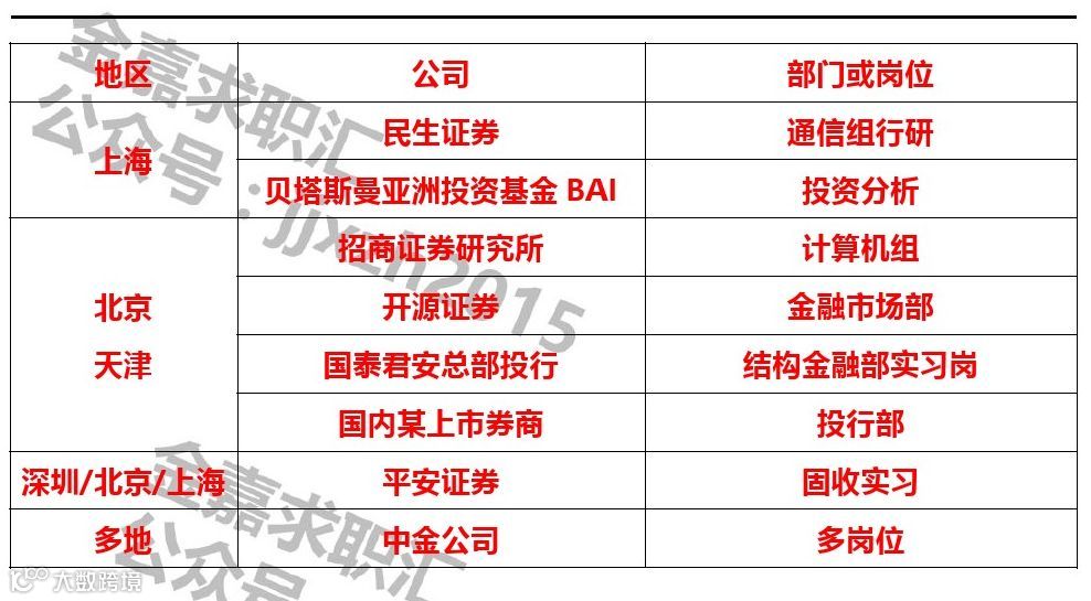 3、券商投行类相关实习经历优先;