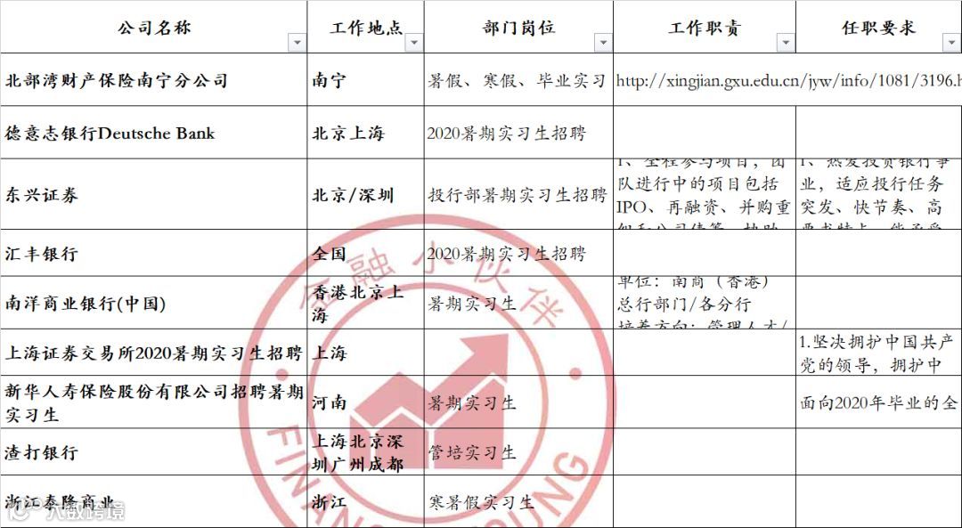👆 最新暑期实习汇总表,金融小伙伴独家汇总 👆