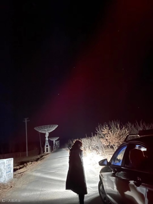 一开始我们还问师傅,会不会觉得我们“头脑发热”,花很多钱突然跑出来干这件没有意义的事。但实际上到后来他自己也很开心,在车上给我们分享各种乘客故事,到达天文台后,自己也拿手机拍照发给家里人,还用车灯帮我们打光拍照片。