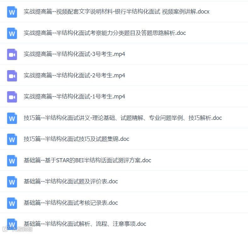 口行各类面试全套资料及视频讲解