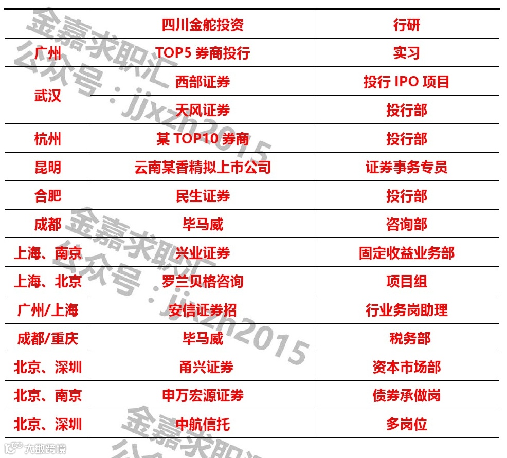 3、抗压性强、适应长期出差、执行力强、热爱投行工作、有责任心、沟通能力强。