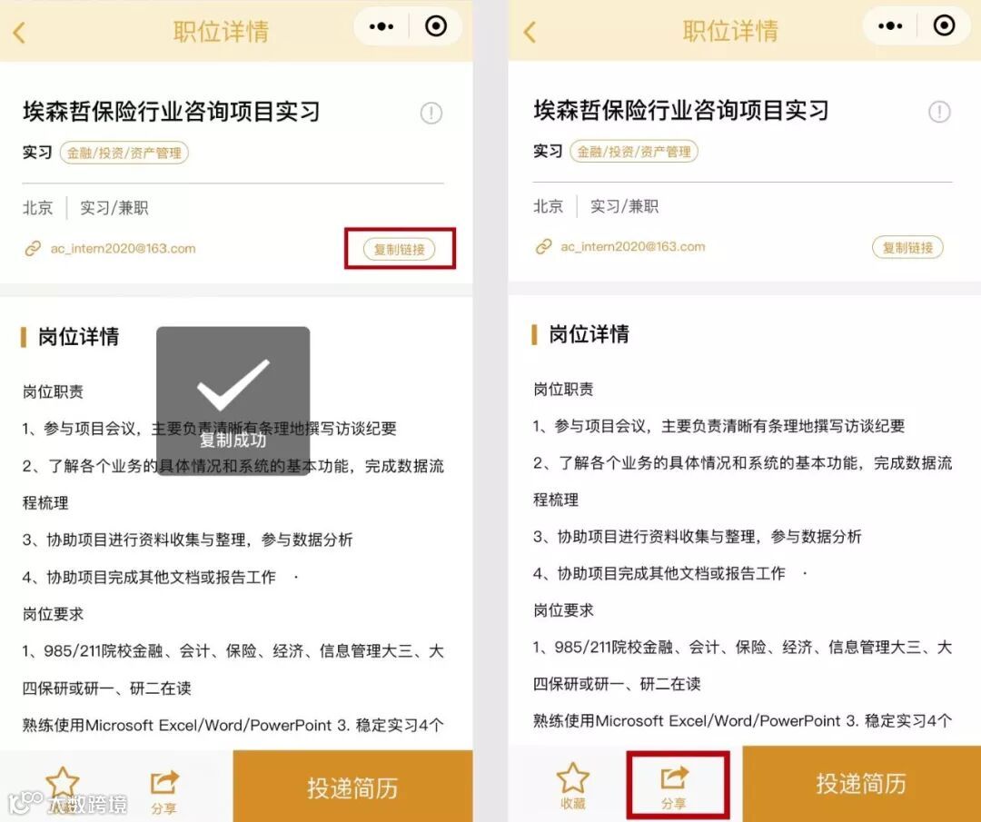 3.也可以分享给同学,一起投递一起实习一起进步。