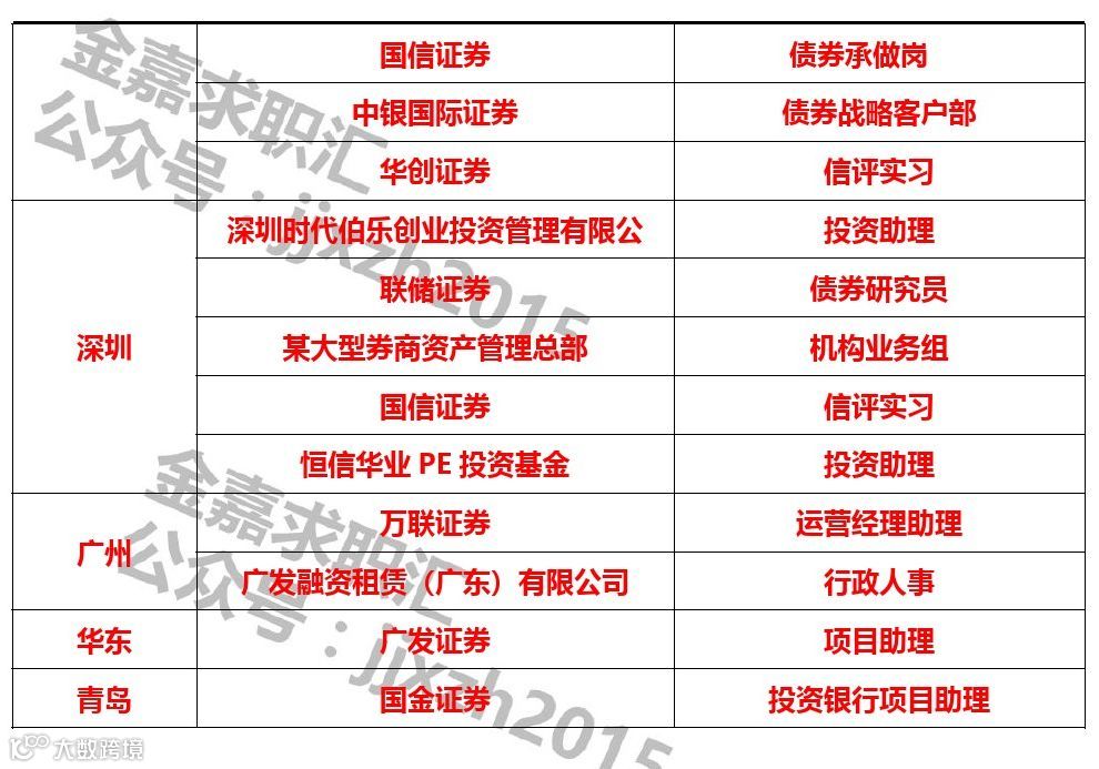 #大中型券商投行部实习生(可择优留用)