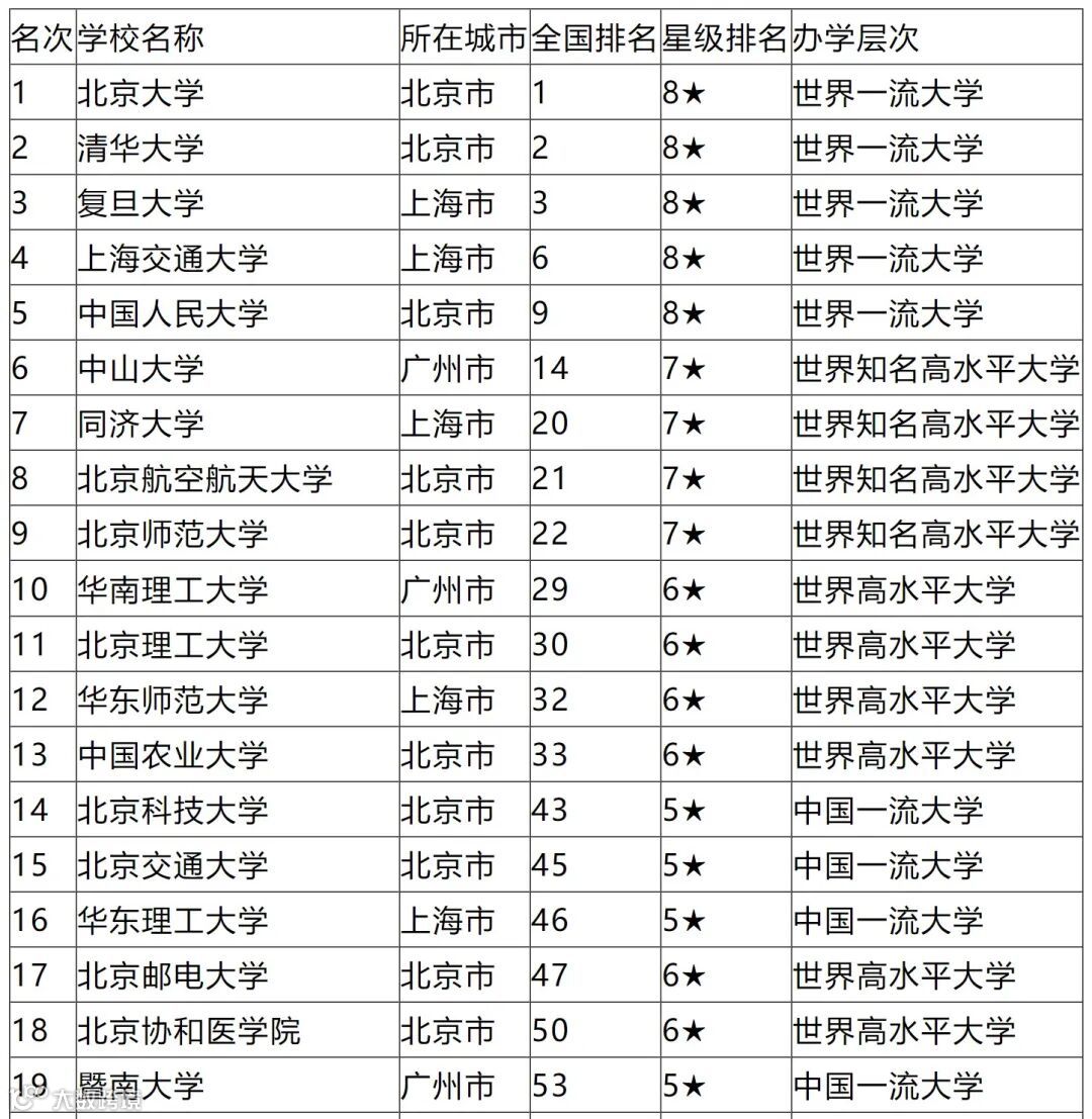 北京大学、清华大学、复旦大学、浙江大学和南京大学雄居2020中国大学排名前5强。
