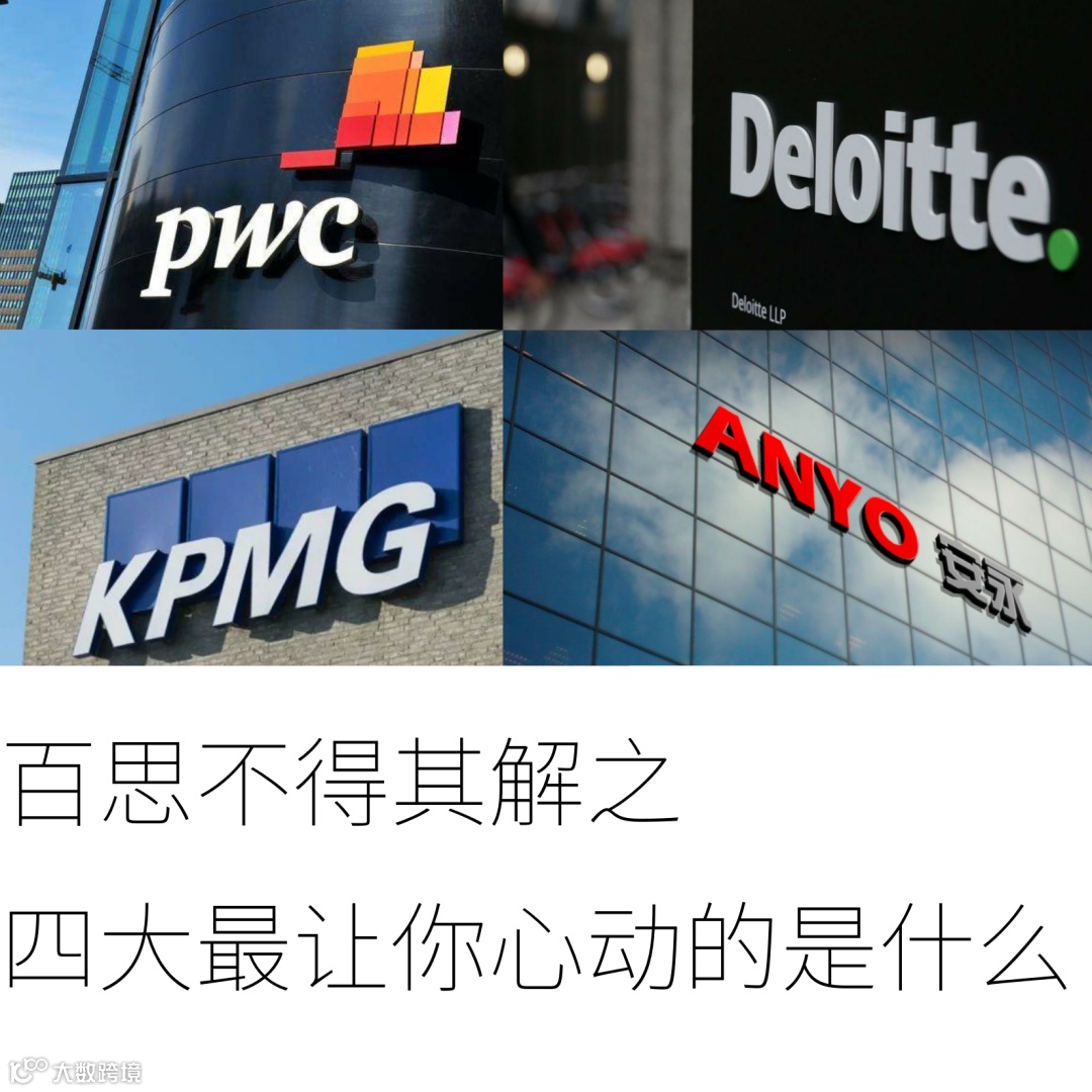 众所周知,“四大”即四大会计事务所:普华永道PWC、毕马威KPMG、德勤DTT以及安永EY。相信只要是求职金融的同学一定都听说过,知名度可想而知。