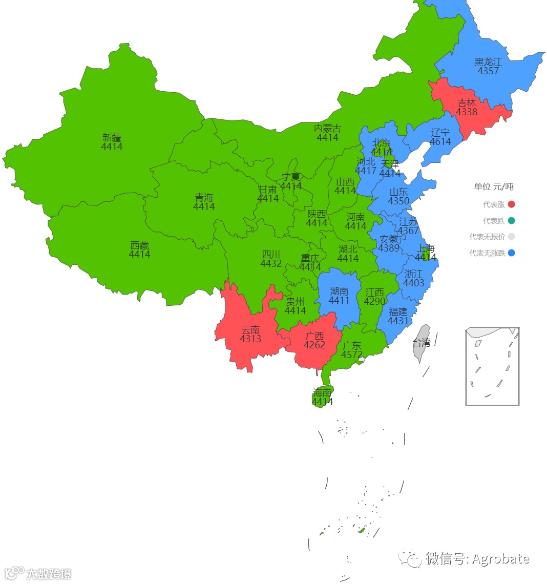 导读:按行政省采集不同样本点价格信息,计算玉米、豆粕大宗原料当日采购均价。 信息来自中国饲料行业信息网、Mysteel、百度爱采购等。供参考。