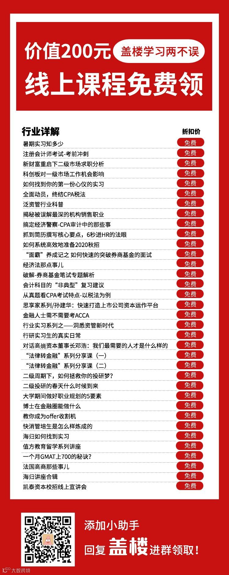 这节课将为并购重组感兴趣以及未来想从事投行的同学们进行并购重组相关知识及求职情况的普及,希望你从中有些收获。