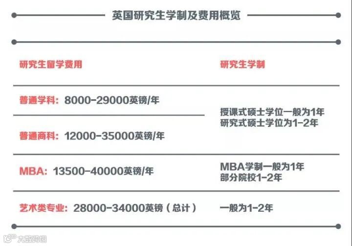 硕士留学生费用从£5000-£35750不等,医学类专业稍微高些,为£47100,相对于本科医学类专业要便宜;MBA的学费可高达£57200。