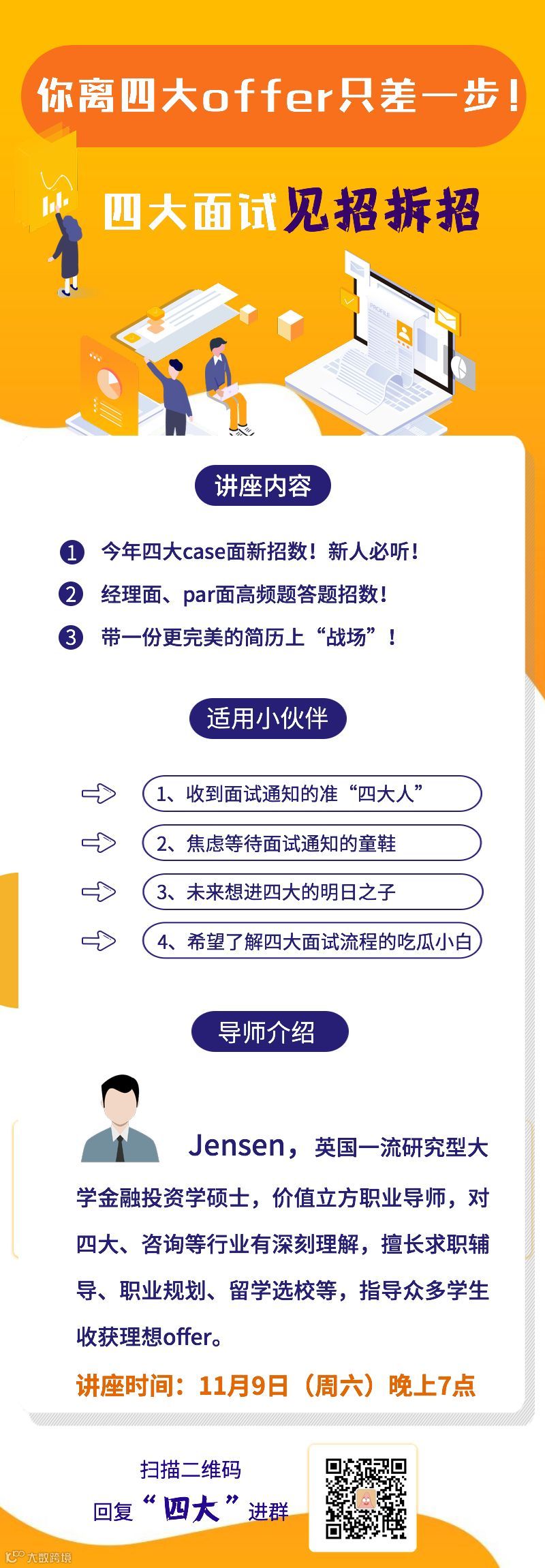 扫码回复“四大”即可免费听讲座!
