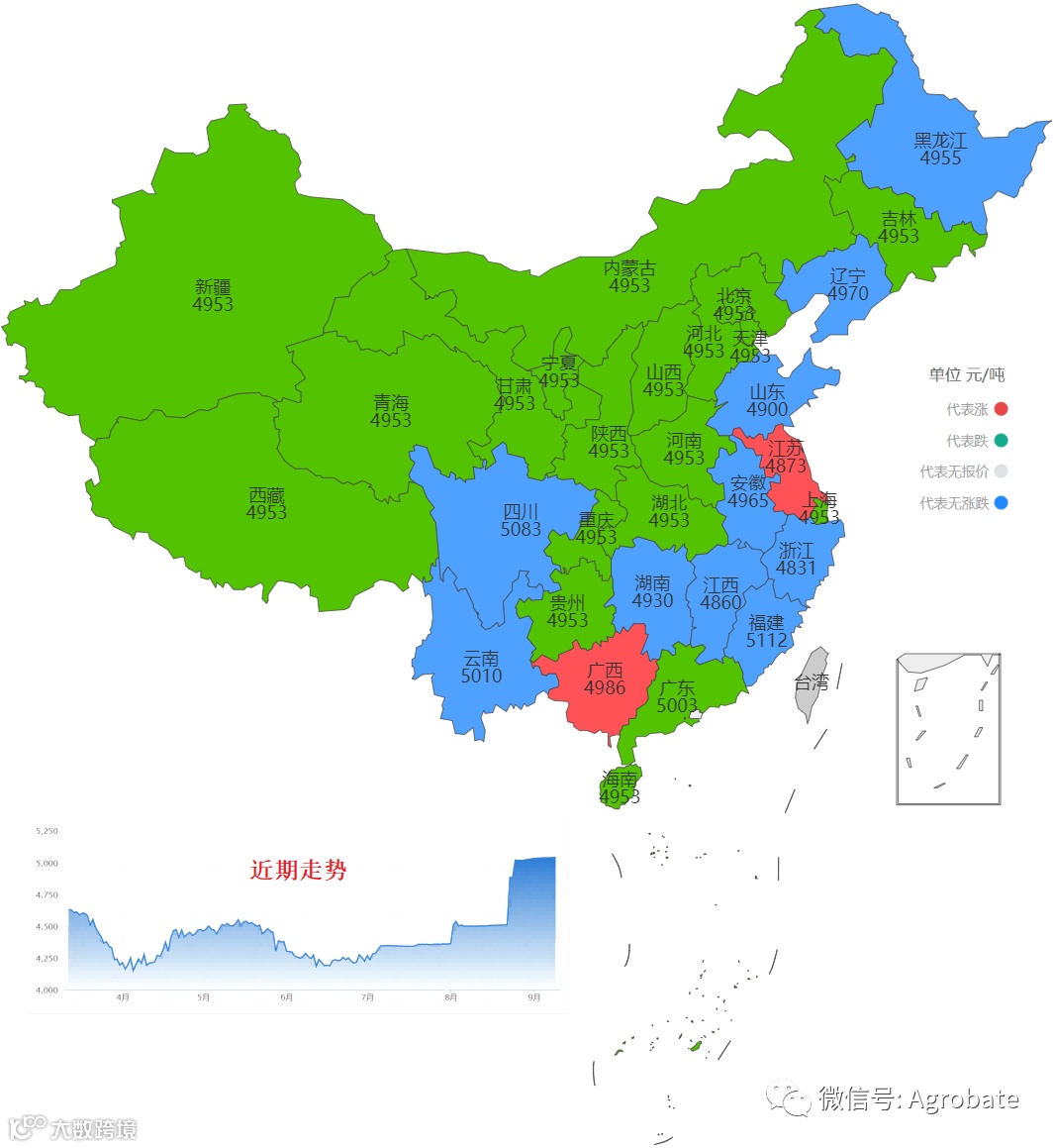 导读:提示以行政省为区划,采集样本点价格信息(来自中国饲料行业信息网、Mysteel、百度爱采购等)